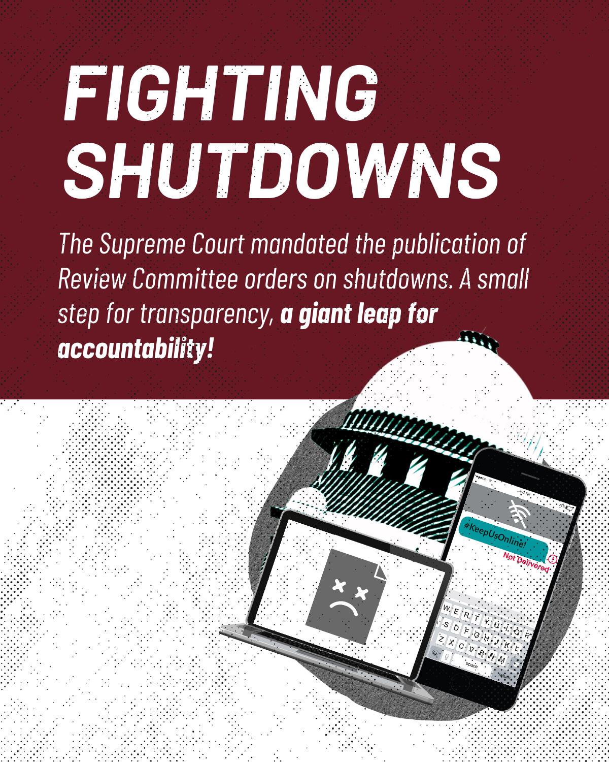 - Impact: The Supreme Court through a final order mandated the publication of all Review Committee orders on internet suspensions, setting a vital precedent for transparency and accountability. This landmark ruling ensures that the committee's functioning remains open and accessible to the public, limiting the indiscriminate and unjustified use of powers to impose internet shutdowns.