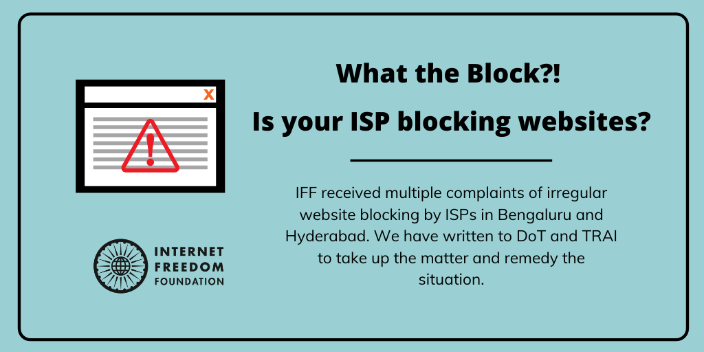 On March 04 and 05, 2020 IFF received or got wind of multiple complaints of websites being blocked by internet providers in both Bengaluru and Hyderabad.