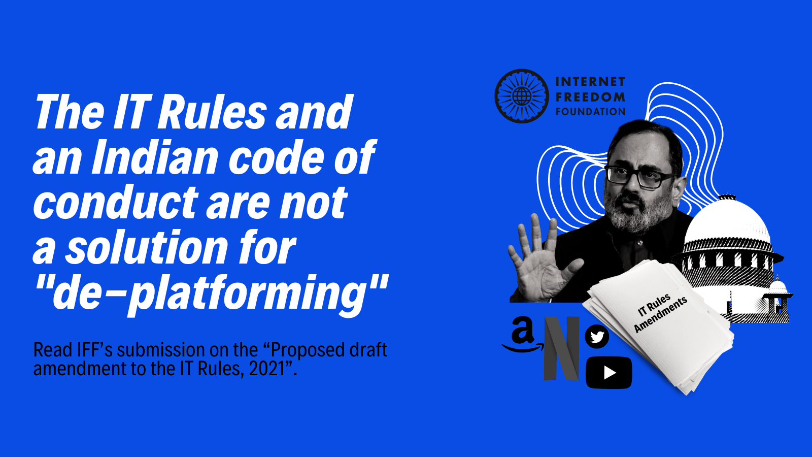 On June 06, 2022, the Ministry of Electronics and Information Technology (“MEITY”) proposed amendments to Information Technology (Guidelines for Intermediaries and Digital Media Ethics Code) Rules, 2021” (hereinafter, “IT Rules, 2021”) and invited comments on the draft. In our comments on the “Proposed draft amendment to the IT Rules, 2021” (hereinafter, “Draft Amendment”) we reiterated our demand to recall the IT Rules, 2021 and also this Draft Amendment. We highlighted how the draft amendments will deepen an injury to the digital rights of every Indian social media user. For instance they propose the establishment of a government censorship body for social media (the, "Grievance Appellate Committee) that will make bureaucrats arbiters of our online free speech!