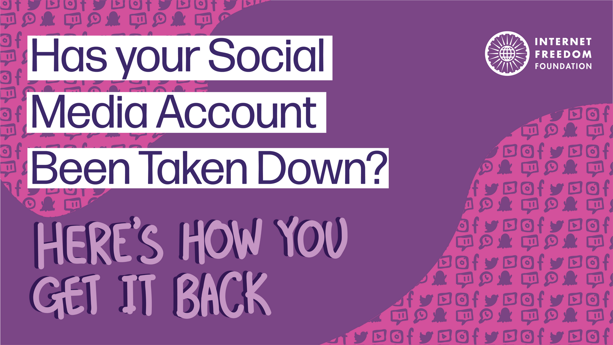You may also file a RTI application with the Ministry of Electronics and Information Technology, the Ministry of Home Affairs and the Ministry of Information and Broadcasting through the online portal, seeking information regarding why your account has been restricted. You may also choose to send a legal notice to the platforms challenging the blocking and demanding your account be restored without delay.