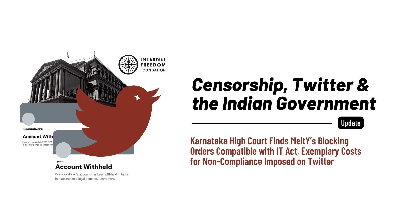 On June 30, 2023, the Karnataka High Court in X Corp. v. Union of India, while dismissing Twitter Inc.’s challenge to the Blocking Orders issued by the Ministry of Electronics and Information Technology’s (“MeitY”) under Section 69A of the Information Technology Act, 2000 (“IT Act”), found MeitY’s orders to be compliant with directions in Shreya Singhal v. Union of India. With regard to proportionality and language of the statute, the HC interpreted Section 69A to include the power of blocking an entire account, as opposed to specific tweets. Further, it imposed a cost of Rs. 50 lakhs on Twitter Inc. for being wilfully non-compliant with MeitY’s orders.