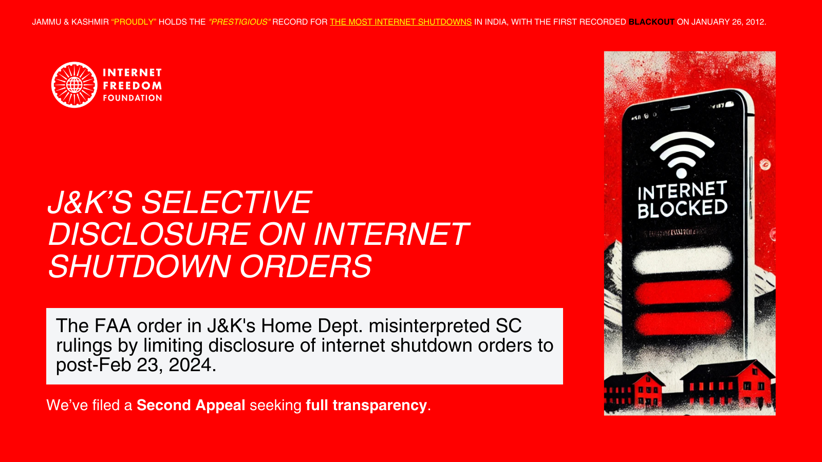 IFF remains committed to ensuring transparency and accountability in internet shutdown decisions. Our efforts will continue until the state upholds its constitutional and statutory obligations by making all internet suspension orders and review committee orders publicly accessible, as mandated by law.