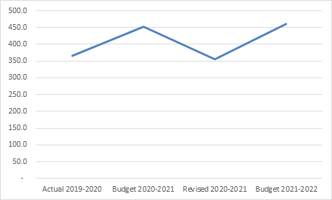 An increased spend on Information and Publicity may be noticed, with Rs 460.8 crore being allocated to this (compared to Rs. 354.9 crore in the Revised Estimates of 2020-2021). However, spending on the same has fluctuated over the years. Indeed, not only were the Revised Estimates a 22% decrease over the Budgetary Estimates of 2020-2021, they were also 3% less than the actual spending in 2019-2020.
