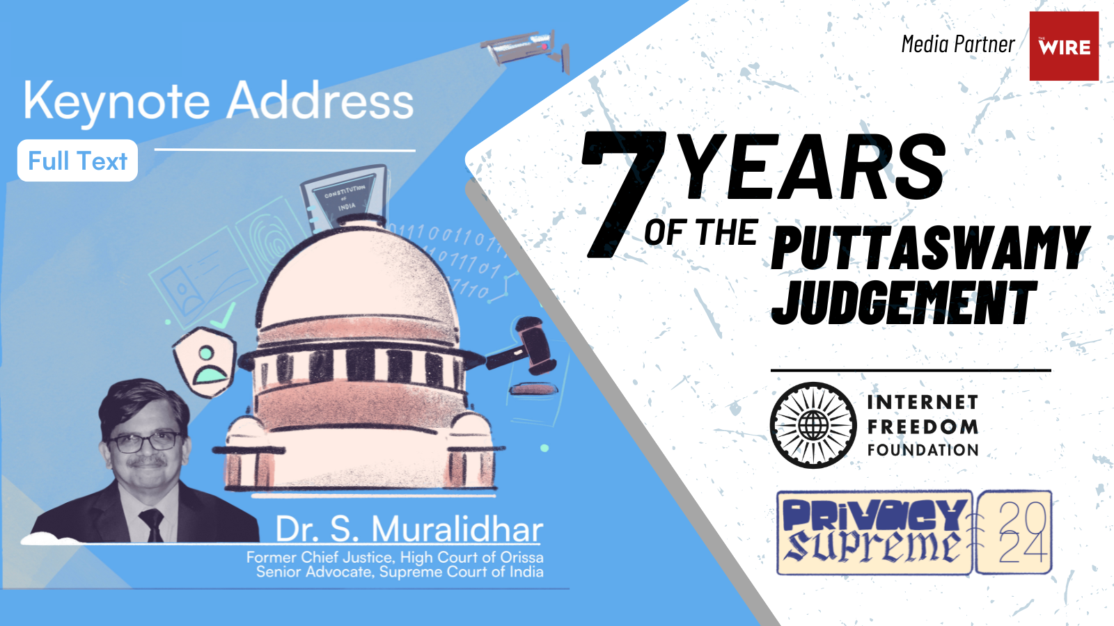 This is a transcript of Dr. S. Muralidhar's Keynote Address at IFF's flagship event Privacy Supreme held on August 22, 2024 at India International Centre, New Delhi.