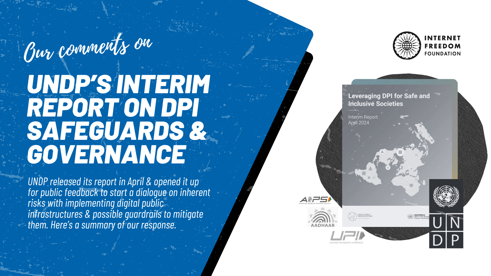 In April 2024, UNDP released its Interim Report titled ‘Leveraging DPI for Safe and Inclusive Societies’ (the “Report”), comprising global perspectives on the current digital public infrastructure (“DPI”) ecosystem, and how it may be harnessed by nations for digital inclusion, good governance, and meeting Sustainable Development Goals. The Report also attempts to address the inherent risks tied to DPI implementation and propose mitigation strategies. It opened up the Report for public feedback until June 30, 2024 through a feedback form. IFF submitted its feedback, an email copy of which can be accessed here.