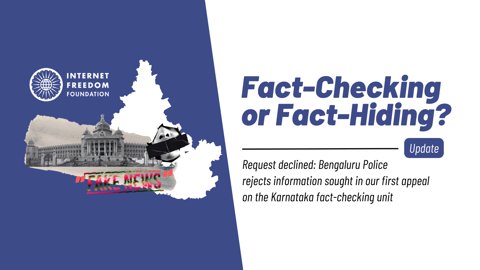 On August 29, 2023 we filed a First Appeal for our Right to Information (RTI) request dated July 13, 2023 with the Public Information Officer (PIO) for the Office of Deputy Commissioner of Police for Bengaluru Police inquiring about the constitution of a Fact Checking Unit (FCU) by the Bengaluru Police. We challenged the rejection of our RTI application dated August 11, 2023 by the Office of the Commissioner of Police, Bengaluru City which was rejected on the ground that the information sought is ‘completely vague, speculative and questionable’. In response to our first appeal dated September 21, 2023, the PIO for Commissioner of Police, Bengaluru City has yet again failed to provide any information.
