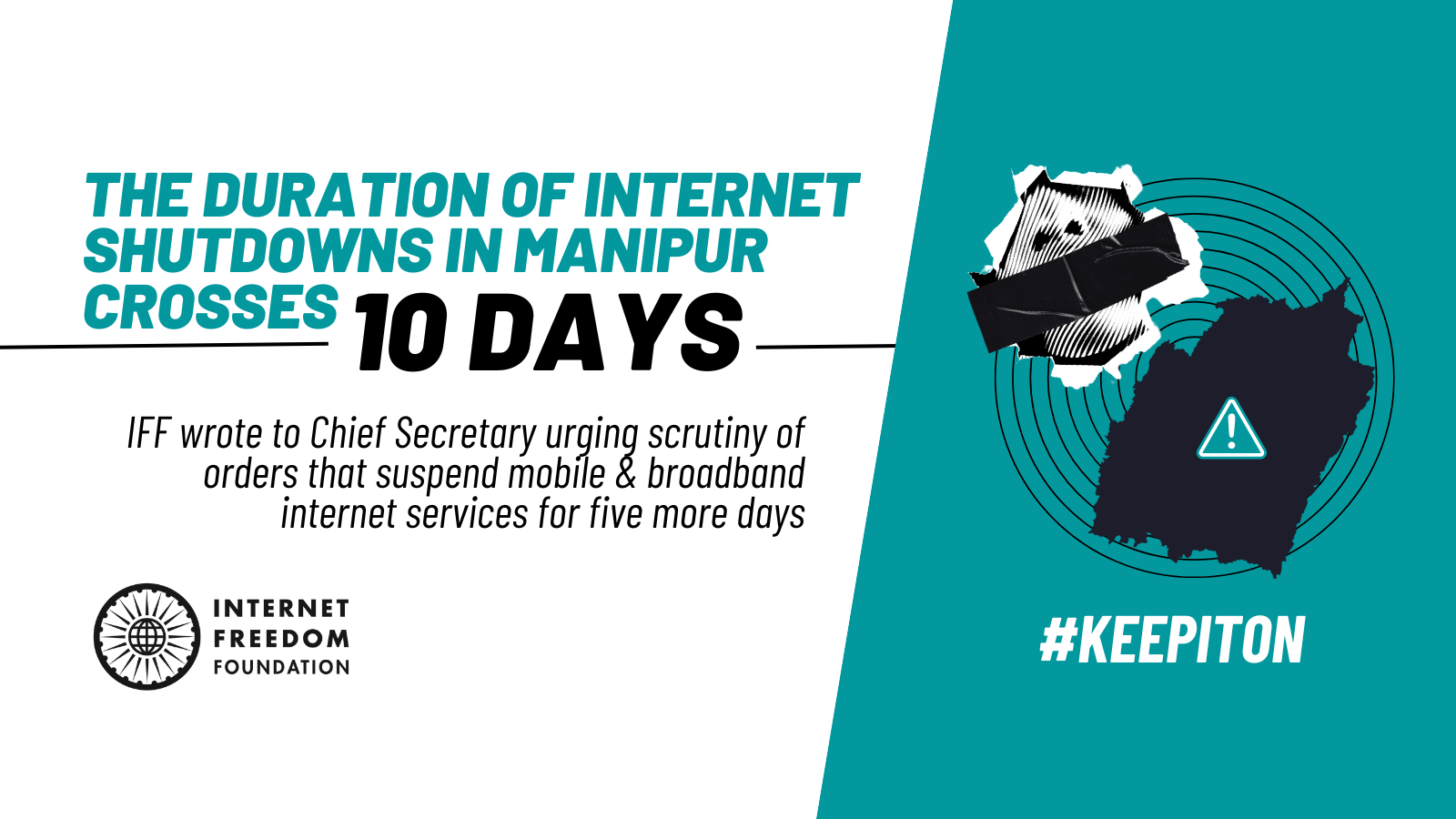 The duration of internet shutdowns in Manipur crosses 10 days. IFF wrote to Manipur Chief Secretary urging scrutiny of orders #KeepItOn
