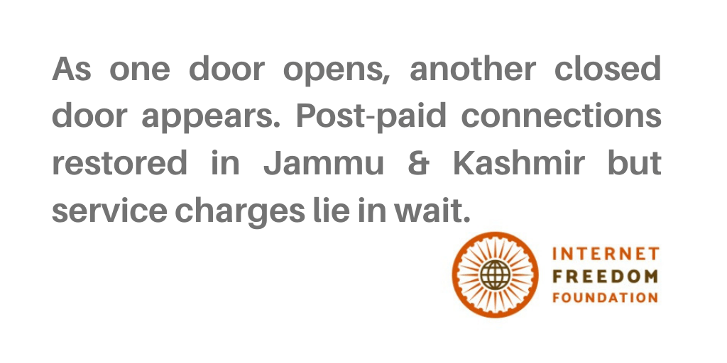 Postpaid connections restored in Jammu & Kashmir but access restricted due to charges levied.