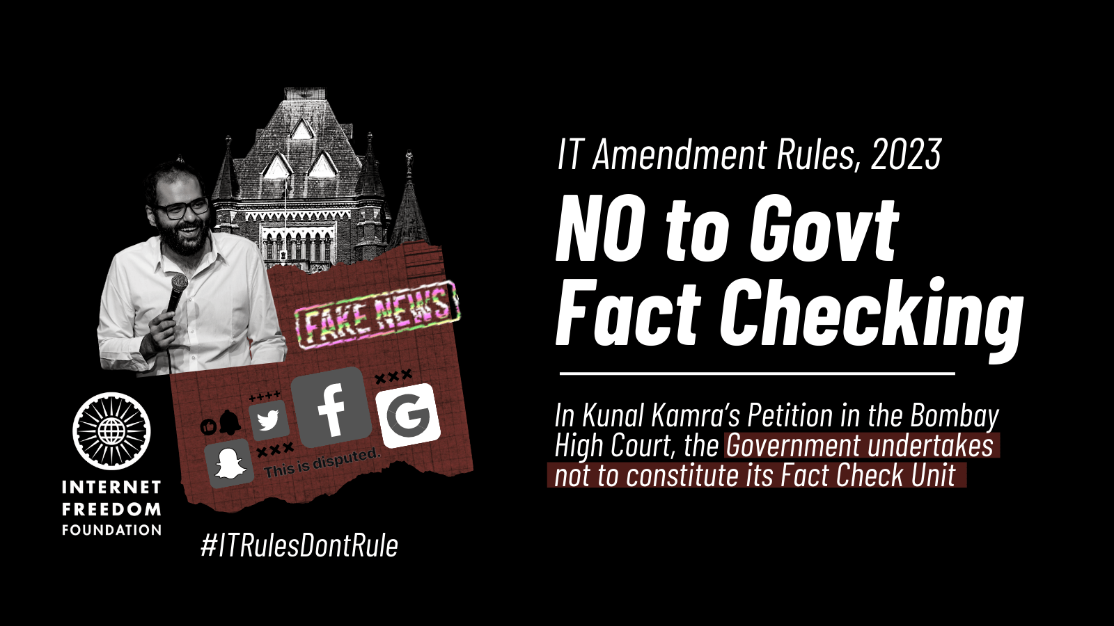 We will continue to provide legal support to Mr Kunal Kamra in his efforts to protect the right to speech and privacy of Indians on the internet, when the matter moves for final hearings. We are immensely grateful to Sr. Adv. Navroz Seervai and Sr. Adv. Darius Khambata for leading us in the matter. They were assisted by Advocates Arti Raghavan, Meenaz Kakalia, and the legal team from IFF comprising Gautam Bhatia, Vrinda Bhandari, Abhinav Sekhri, Tanmay Singh and Gayatri Malhotra.