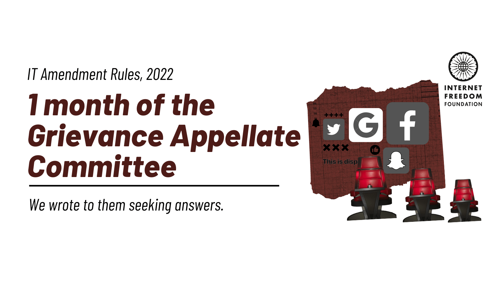 On March 14, 2023, we filed an Right to Information application (“RTI”) with MeitY, seeking details of the GAC led by the Ministry, including the details of the intermediaries under the IT Act, 2000 against whose decisions appeals had been filed. And on April 01, 2023, we sent the afore-mentioned letter to the GAC(s) directly, urging them to release: