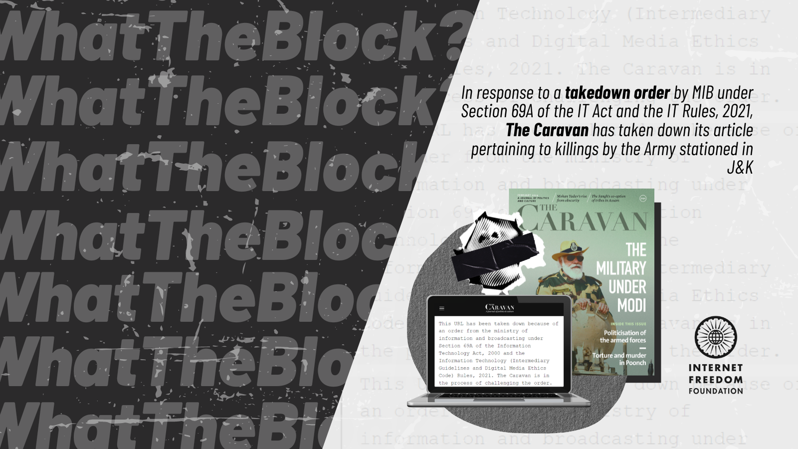 In response to a takedown order by the Ministry of Information and Broadcasting under Section 69A of the IT Act and the IT Rules, 2021, The Caravan has taken down its article pertaining to killings by the Army stationed in Jammu & Kashmir.