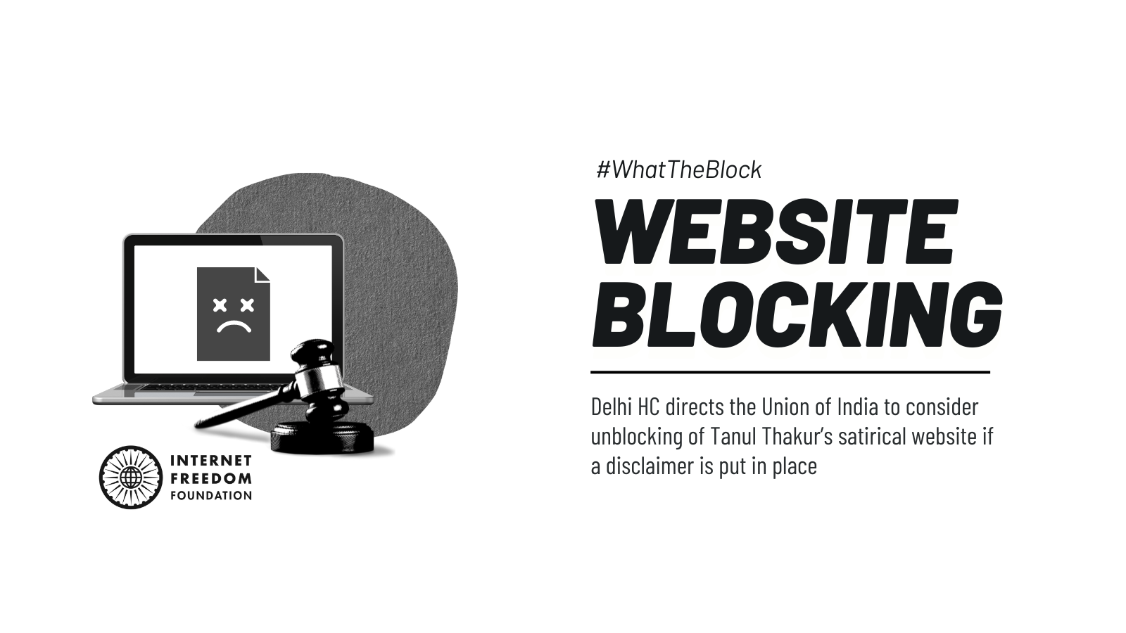 Tanul Thakur's satirical website, was banned by MeitY without providing him a hearing or a copy of the ban order. the Delhi HC directed the Union of India to consider unblocking the website if a suitable disclaimer is put in place within 6 weeks.