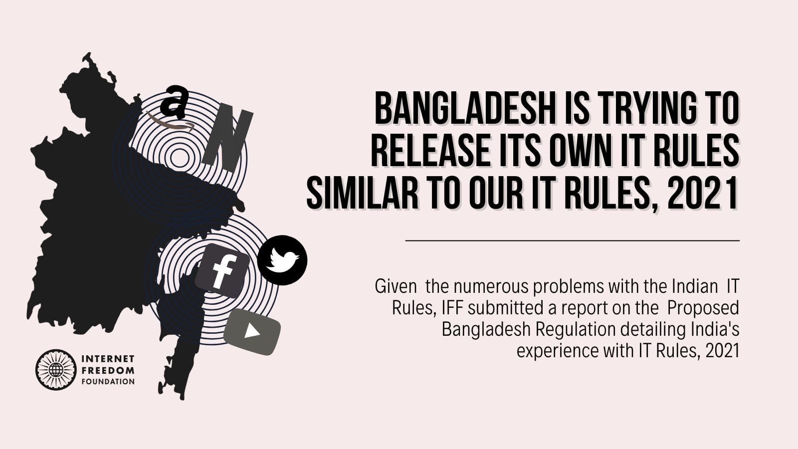 On 3rd February 2022, Bangladesh Telecom Regulatory Commission (‘BTRC’) published “The Regulation for Digital, Social Media and OTT Platforms, 2021” (“Bangladesh Draft Regulation”) and invited comments. We sent our comments in the form of a report to the BTRC. Our rationale behind sending the comments was that there are many similarities between the Bangladesh Draft Regulation and Information Technology (Intermediary Guidelines and Digital Media Ethics Code) Rules, 2021 (“Indian IT Rules”). Since we have extensively worked on the Indian IT Rules since their notification in 2021 (in the form of public advocacy, representations and legal support), we provided insights into India’s experience with these rules. We hope that the report is of assistance to the BTRC as they contemplate regulation of digital, social media and OTT platforms.