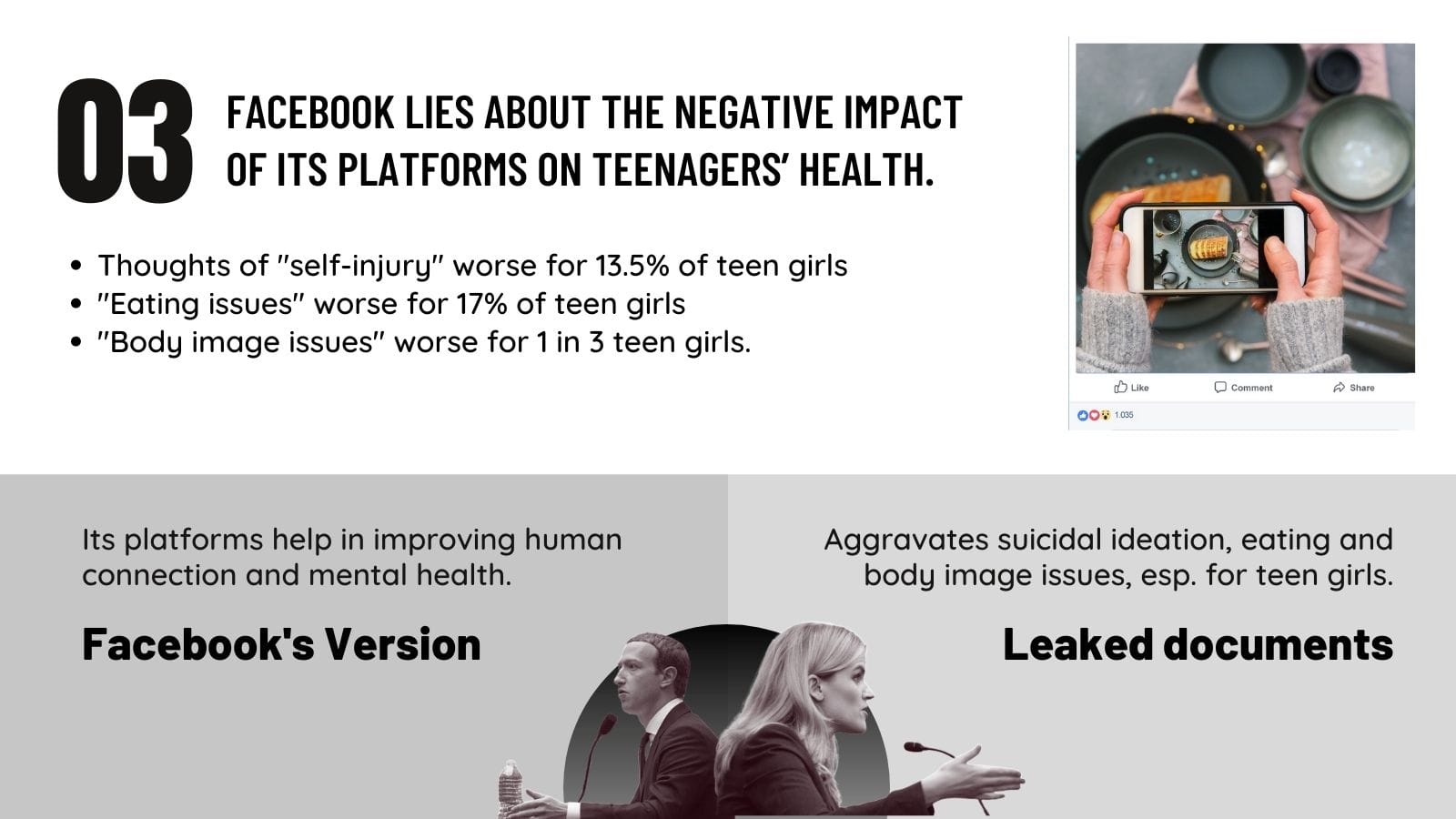 - 17% of teen girl Instagram users say the platform makes “eating issues” worse;
