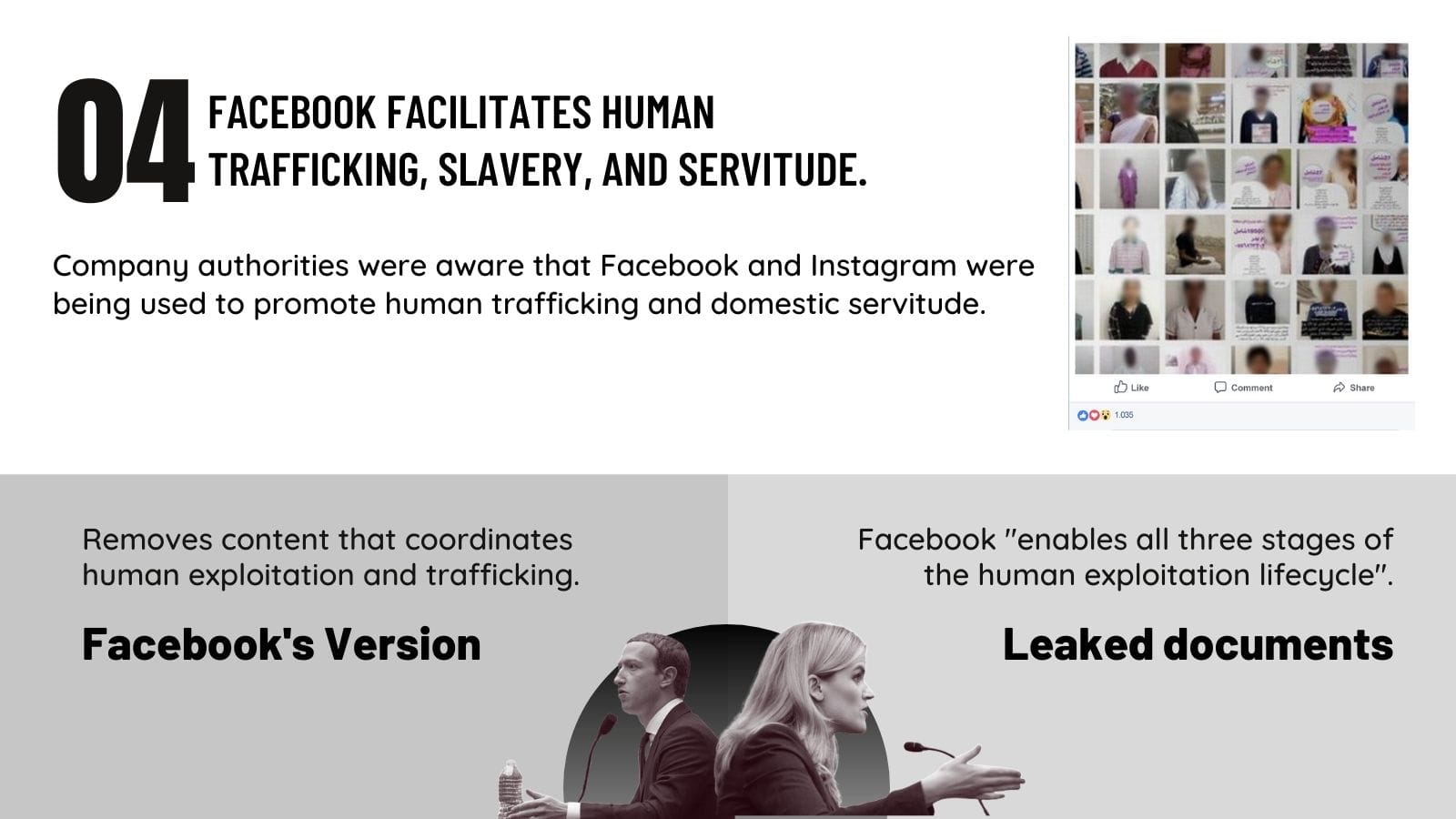 Complaint: Facebook misled investors and the public about its promotion of human trafficking/slavery/servitude.