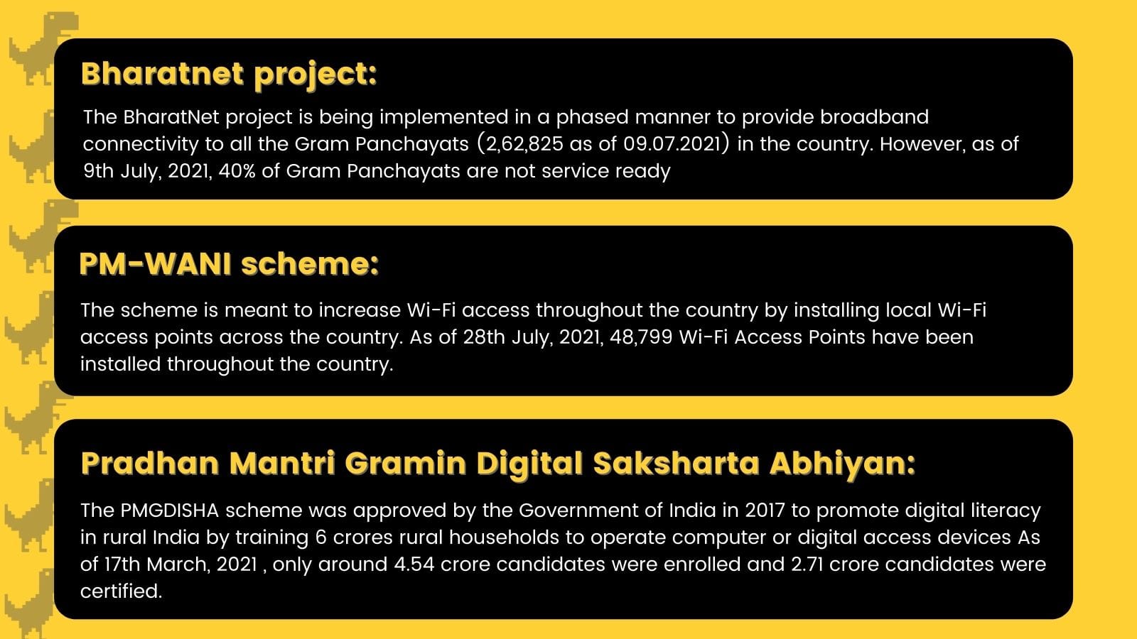 Here, we look at the progress of the various schemes being undertaken by the government to improve internet access: