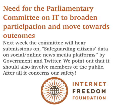 Need for the Parliamentary Committee on IT to broaden participation and move towards outcomes