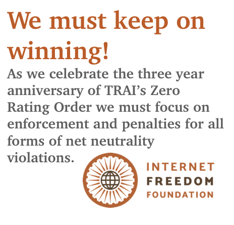 Celebrating the three year anniversary of TRAI's Net Neutrality Order with action #SaveTheInternet