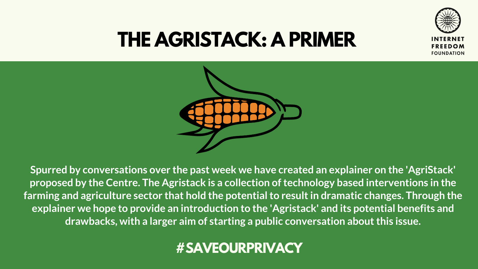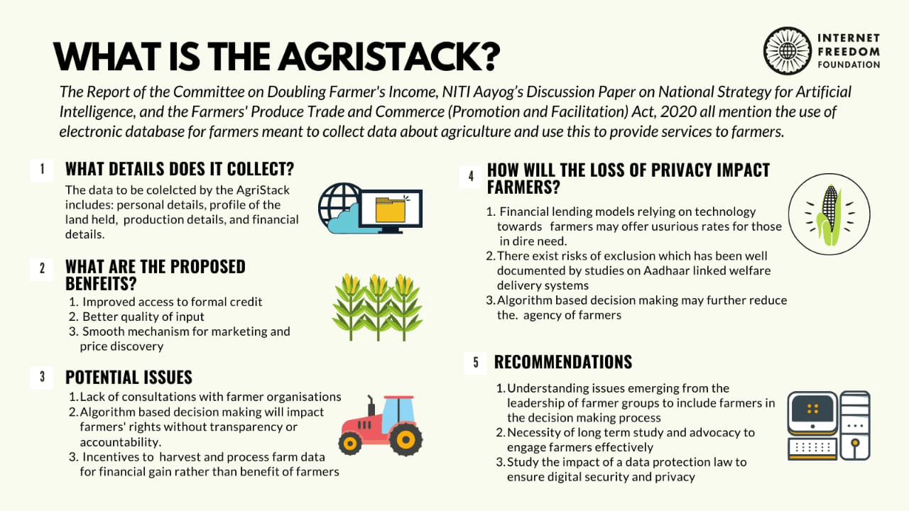 Spurred by conversations over the past week we have created an explainer on the 'AgriStack' proposed by the Centre. The Agristack is a collection of technology based interventions in the farming and agriculture sector that hold the potential to result in dramatic changes. Through the explainer we hope to provide an introduction to the 'Agristack' and its potential benefits and drawbacks, with a larger aim of starting a public conversation about this issue.