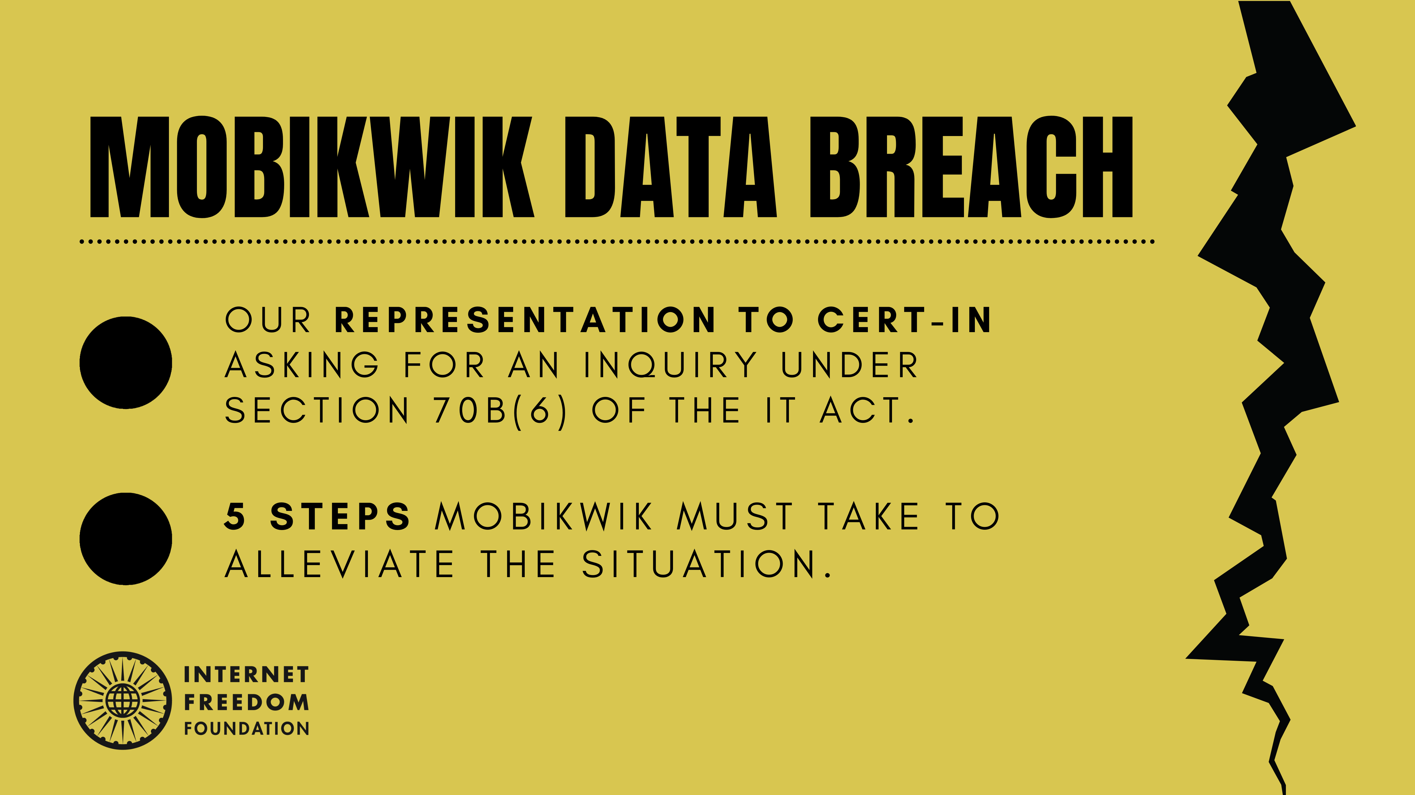 India is witnessing one of the most significant data breaches in history. Users, security researchers and news organisations have reported that data of 10 crore Indians, including their passport details, addresses and phone numbers, is available for sale on the dark web. As per press reports, the data was in the custody of MobiKwik, which provides a mobile based payment system. While MobiKwik has denied the data breach, independent security researchers and Indian Express have verified that details of MobiKwik users are available on the dark web. We have written to the Computer Emergency Response Team (CERT-IN) asking them to initiate an inquiry over the data breach in terms of Section 70B(6) of the Information Technology Act, 2000. In this post, we point out the five steps MobiKwik must take to alleviate the situation.