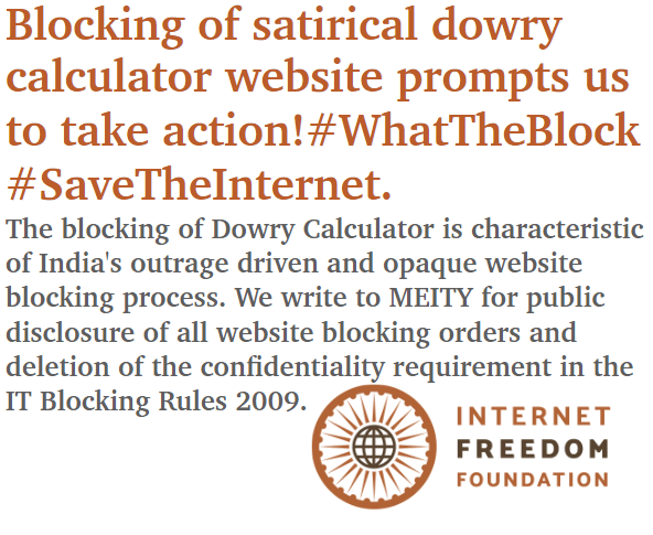 Blocking of satirical dowry calculator website prompts us to take action! #WhatTheBlock #SaveTheInternet