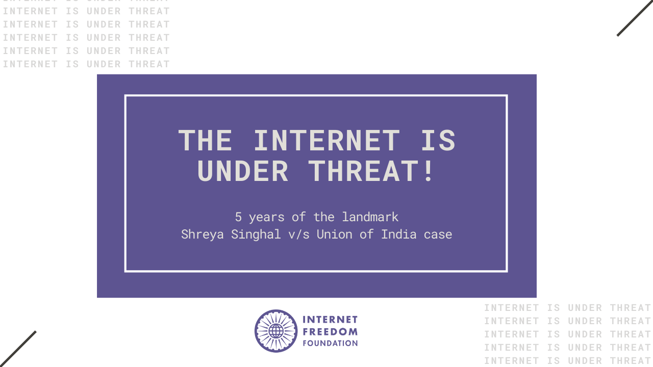 To mark the 5 year anniversary of the Shreya Singhal verdict, we have been grateful to receive support from LiveLaw, IndianKanoon and Broadband Forum who will host banner links and signal to their users to donate to IFF for a period of two weeks. We have also created a video to explain this decision and will be authoring a set of three op-eds to go in depth into this decision in light of contemporary developments.