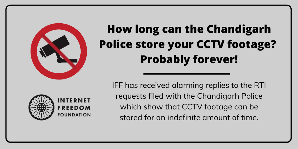 On 20 January 2020, IFF filed an RTI with the Chandigarh Police seeking information about the use of CCTV cameras and Facial Recognition Technology (FRT) systems in the city of Chandigarh. The questions asked revolved around the legal basis for installation of CCTV cameras, details of tenders issued for procurement of CCTV cameras, security and storage of CCTV footage and sharing of CCTV footage with external agencies.