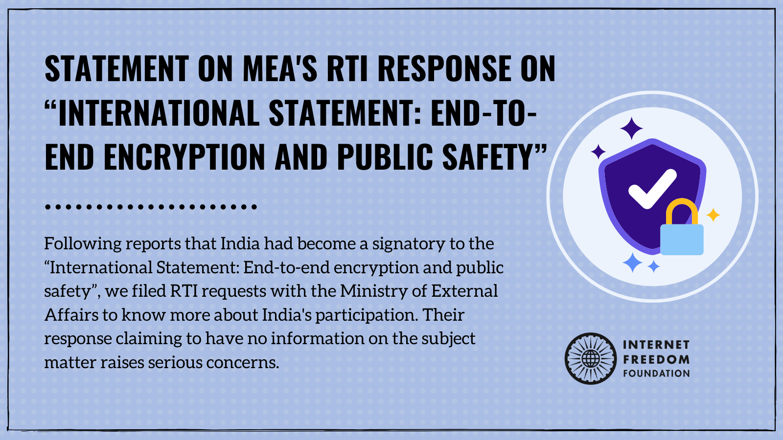 Concerned by this development after it was brought to our notice by an IFF Forum Member, we filed Right to Information requests with the Ministries of Home Affairs, External Affairs and Electronics & IT asking them about India’s involvement in the Statement.