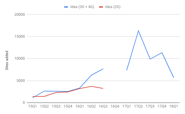 Idea also reports the number of 2G and 3G+4G cell sites they added that quarter. This is also graphed up (See Graph 8). We acknowledge that, it's hard to get a more specific picture, but then if there is an actual need for investment, a clear, public statement with data should be made.