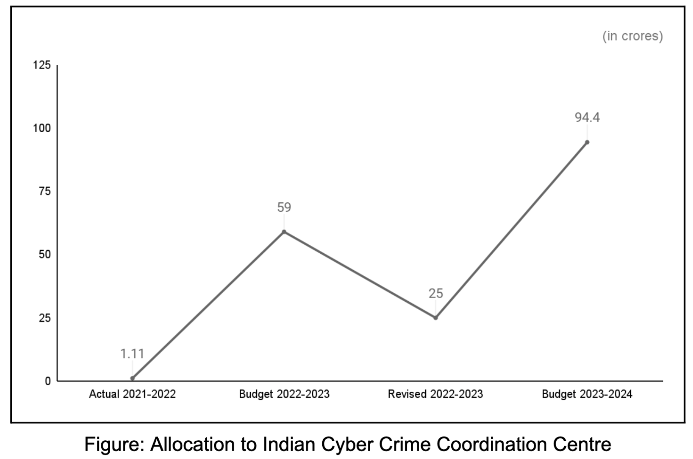 The Indian Cyber Crime Coordination Centre has been allocated ₹ 94.40 crore which is 60% more than the budget allocated in 2022-23 (₹ 59 crores).